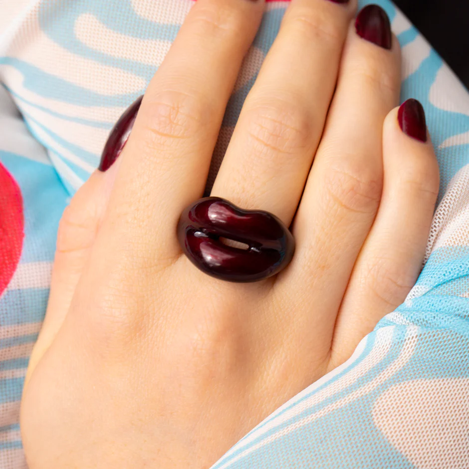 Our Hotlips rings are made from sterling silver and hand painted in enamel.