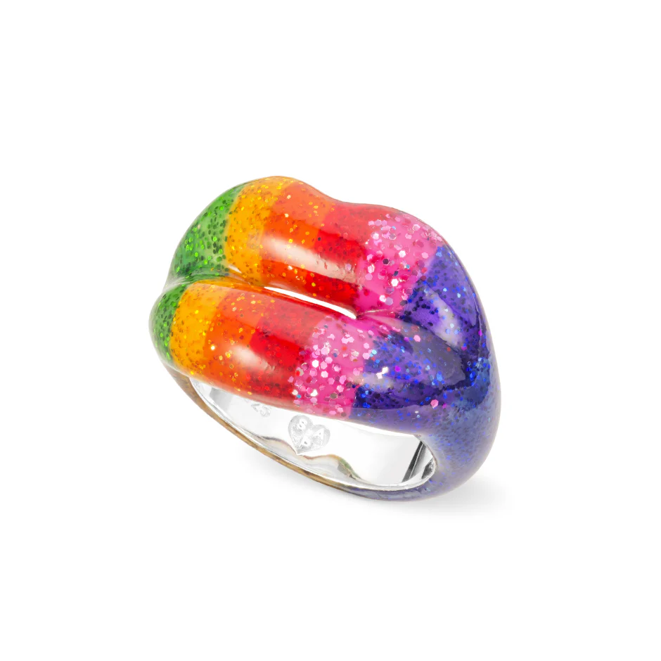 Sterling silver and enamel glitter rainbow ring