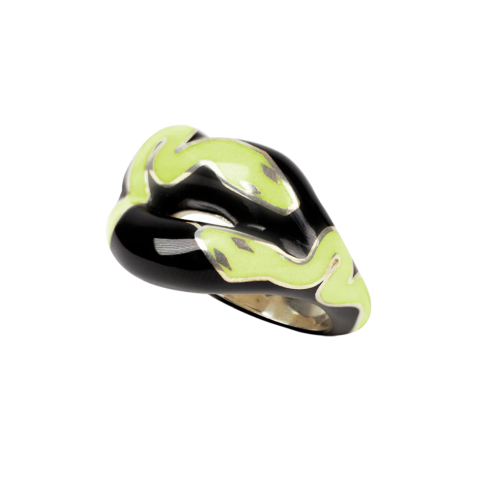 Our Hotlips rings are made from sterling silver and hand painted in enamel